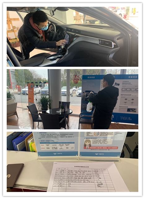 對黃易佳來說,消殺任務也是工作中的重中之重。公司領導一直密切關注疫情的發展,在疫情初期及時調整了工作重點,為員工準備了口罩、手套、消毒水、紅外體溫儀等防護用品。黃易佳和同事們每天嚴格佩戴防護設備,分早、中、晚三次進行店內全面消毒殺菌工作。他們為來店看車的客戶進行體溫測量,為沒有佩戴口罩的客戶免費提供口罩,佩戴后方可進店看車,并且按照社區的要求對每一位進店客戶進行登記。