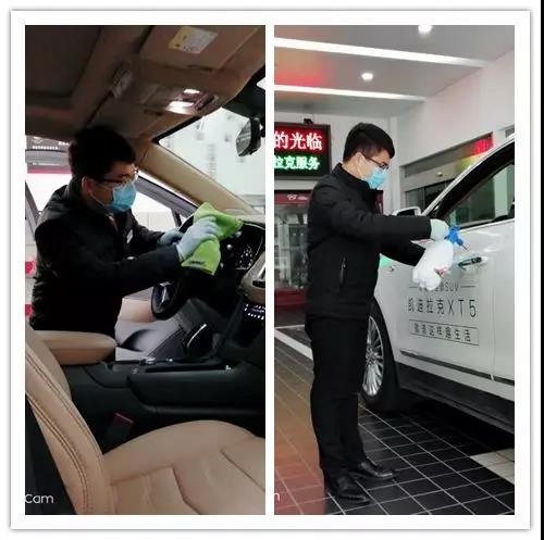 疫情發(fā)生后,公司第一時(shí)間制定了相關(guān)的規(guī)章制度,汪慶和同事們佩戴防護(hù)設(shè)備,每天至少兩次對售后及銷售辦公區(qū)域消毒,為所有到店看車的客戶測體溫,并提供口罩、手套等防控用品。