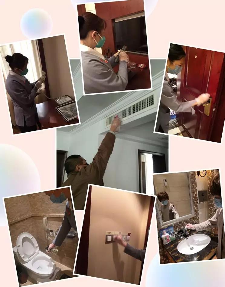 他們還將所有客用設(shè)施及公共區(qū)域每日定時進(jìn)行消毒,公共設(shè)施每兩個小時進(jìn)行一次化學(xué)消毒,每三個小時進(jìn)行一次中藥消毒,并用顏色區(qū)分抹布,消毒液浸泡后再擦拭相應(yīng)的場所,他們還建立了清潔消毒臺賬。對于客房內(nèi),他們對電話、門鈴、開關(guān)、三缸等每天消毒,并開窗通風(fēng)2小時以上,棉織品高溫消毒后灌袋;有重點的對房間空調(diào)風(fēng)口進(jìn)行清洗、噴灑消毒。