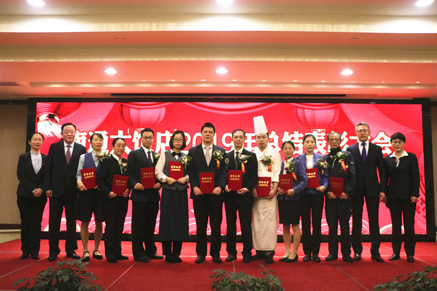 飯店領導為2019年度的優秀員工、十佳員工和先進集體頒發了獎狀和獎金。