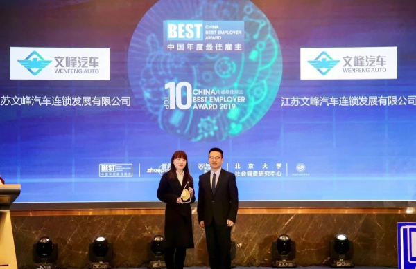 12月18日,在“2019中國年度最佳雇主頒獎盛典暨中國人力資本國際管理論壇(南方大區)”上,文峰汽車首次獲得 “2019中國年度最佳雇主南通地區十強”。