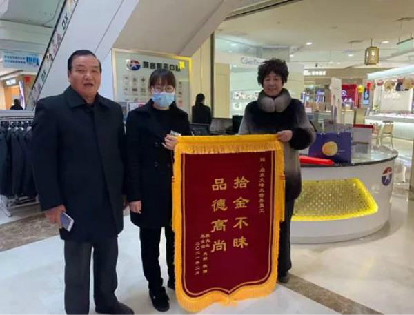 當這位女士聽說顧牡丹一直在尋找她的時候,感動地表示,到底是文峰人啊,撿到兩萬多塊錢的金器,不但不貪圖,還主動地找我。回去后,她和家人特地制作了一面錦旗送到柜臺,以表達對文峰員工的感謝之情。