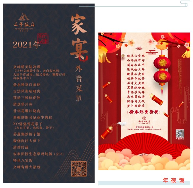 年夜飯?jiān)诩页裕瓤梢员苊馊藛T密集接觸,又能滿足家庭聚會(huì)、與家人吃團(tuán)圓飯的需求。江蘇文峰集團(tuán)旗下多家酒店的大廚們放棄了節(jié)日與親人團(tuán)聚,留在南通為廣大市民們精心烹制美味、豐盛的年夜飯,通過外賣的形式,讓大家足不出戶就可以品嘗到星級(jí)美食。