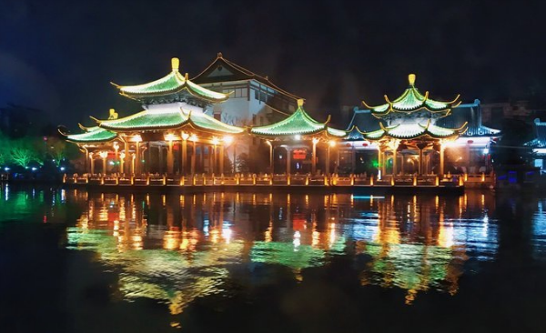 夜游濠河又是另外一番感受,當夜幕降臨,華燈初上,游人可以乘坐夜游船,慢慢行,細細看,因為濠河夜景相當不錯,彩燈一開,五彩斑斕,小城風貌盡收眼底。此時濠河邊的風景和綠地在柔美的燈光映襯下,絢麗又朦朧,幾對情侶挽手前行,平添了幾許浪漫情調(diào),此情此景不由讓人感嘆,莫非人間仙境,疑似地上天堂。