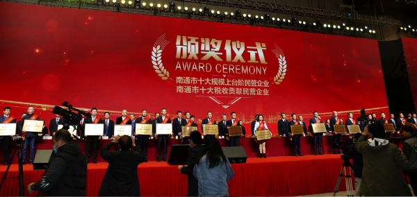 在3月27日召開的南通市民營經濟發(fā)展大會暨第三屆通商大會上,江蘇文峰集團榮獲“南通市十大稅收貢獻民營企業(yè)”稱號。