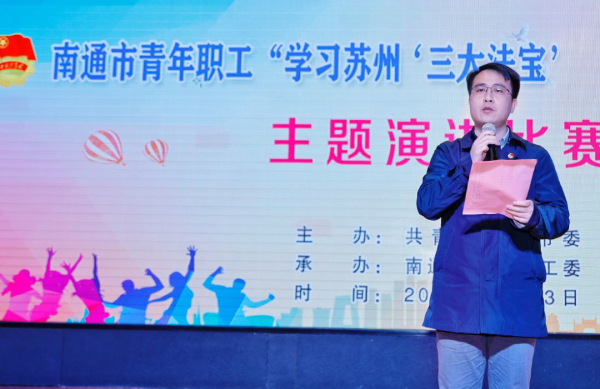 3月23日下午,南通啟瑞廣場青春激揚。共青團南通市委主辦的南通市青年職工“學習蘇州‘三大法寶’,答好南通‘發(fā)展四問’”主題演講比賽正在進行。