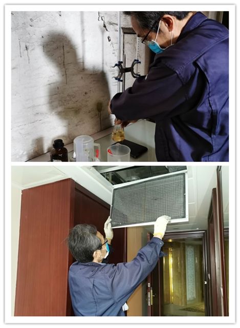 南通大飯店擁有近700間客房,空調消毒、清潔的任務繁重。為保證顧客和員工的安全與健康,姚海群帶領同事對飯店的空調通風系統進行了全面維護,從空調消毒劑的選擇到業務的操作流程,他們都制定了嚴格的標準和規則,并認真貫徹執行。清洗空調的過濾網、出風口和回風口,姚海群和同事們對每一個環節都一絲不茍。在完成空調系統空氣處理機和客房空調的清洗消毒工作之外,他們還要對所有設備進行檢測和維護,讓設備能夠隨時正常工作,以保證室內空氣的清新。